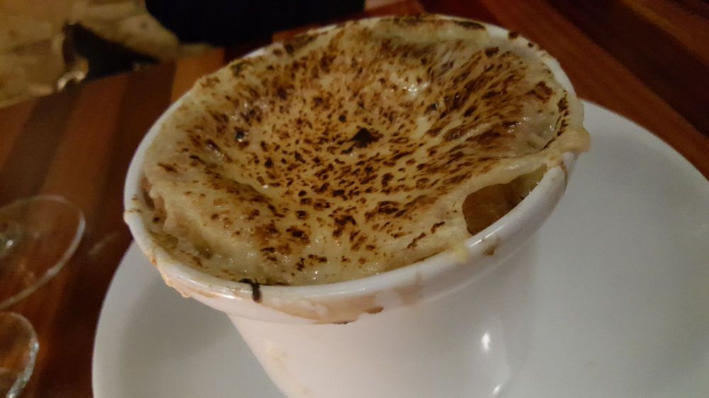 Had the French onion soup, it was a powerhouse of flavor... loved it! Main dish had the Steak and fries.. perfectly cooked .. Can't wait to come back for more.